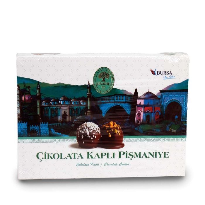 Gemilik Çikolata Kaplı Pişmaniye, geleneksel pişmaniyenin yumuşacık, tel tel dokusunu enfes çikolata kaplamasıyla buluşturuyor. Her lokmada ağızda dağılan hafif tat, çikolatanın zengin aromasıyla mükemmel bir uyum yakalıyor. Hindistan cevizi ve fıstık parçacıklarıyla süslenen bu özel lezzet, hem damaklarda hem de gözlerde iz bırakır. Bursa’nın tarihi siluetini taşıyan zarif kutusu, onu özel günlerde sevdiklerinize sunabileceğiniz prestijli bir hediye haline getirir. Misafir ikramlarında, kahve molalarında veya tatlı sofralarında keyifle tüketilir.