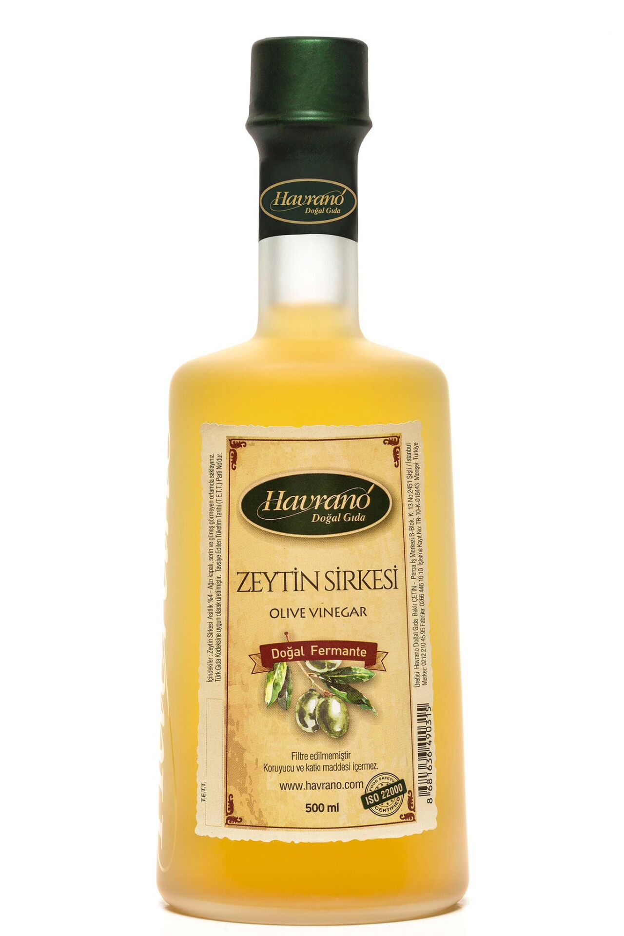 Havrano Zeytin Sirkesi, zeytinlerin doğal fermantasyonuyla elde edilen, eşsiz lezzeti ve sağlıklı özellikleriyle dikkat çeken özel bir sirke çeşididir. Mutfakta hem tat hem de sağlık açısından zengin bir alternatif sunan Havrano Zeytin Sirkesi, özellikle zeytin severlerin vazgeçilmezi olacak bir üründür. Zeytinin doğal aroma ve besin değerlerini taşıyan bu sirke, yemeklerde, salatalarda ve daha pek çok alanda kullanılabilir.